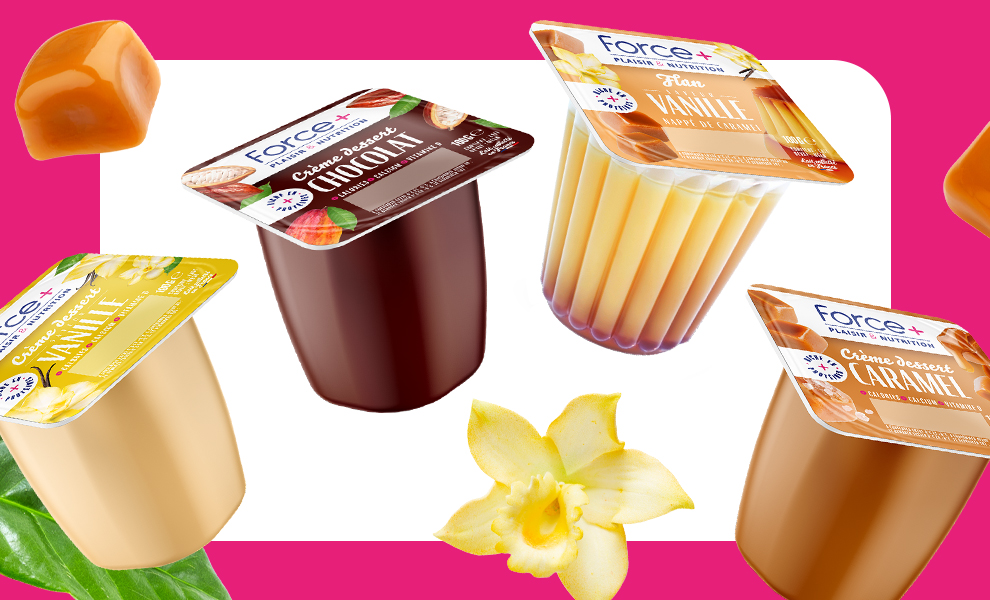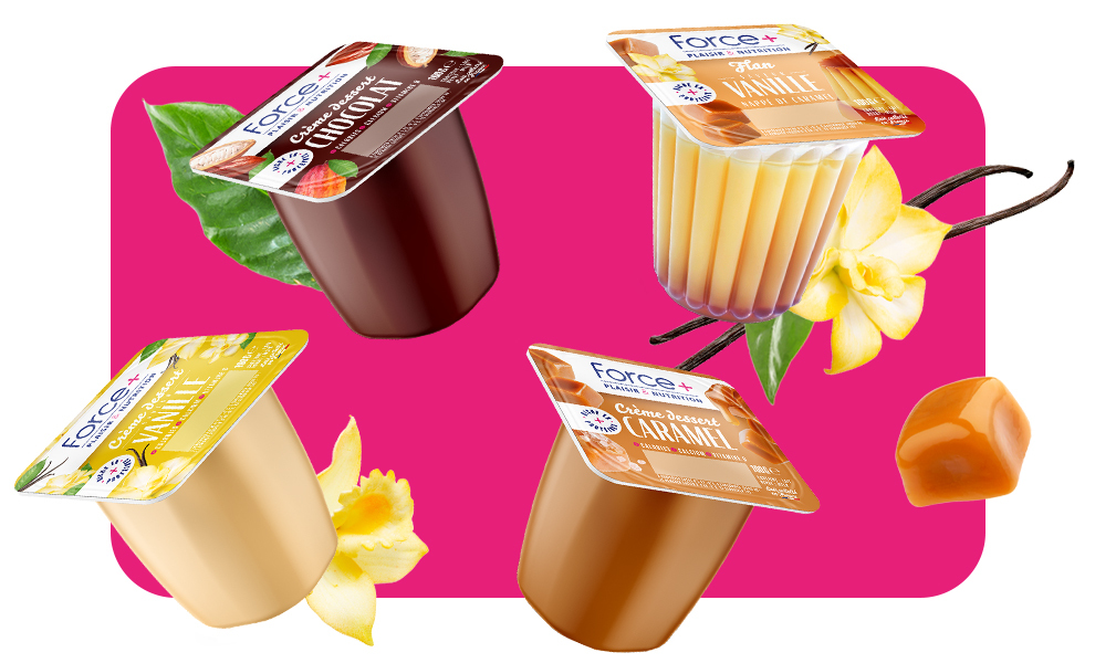 Depuis bientôt 10 ans, nous développons et améliorons nos recettes pour apporter des solutions, avant tout gourmandes, aux patients et aux professionnels de santé pour les aider à lutter contre la dénutrition. Et parce que le conditionnement joue un rôle important dans la perception et l’observance, ce travail de recherche porte également sur la praticité et le grammage de nos produits. Force +, le plaisir au service de la nutrition.